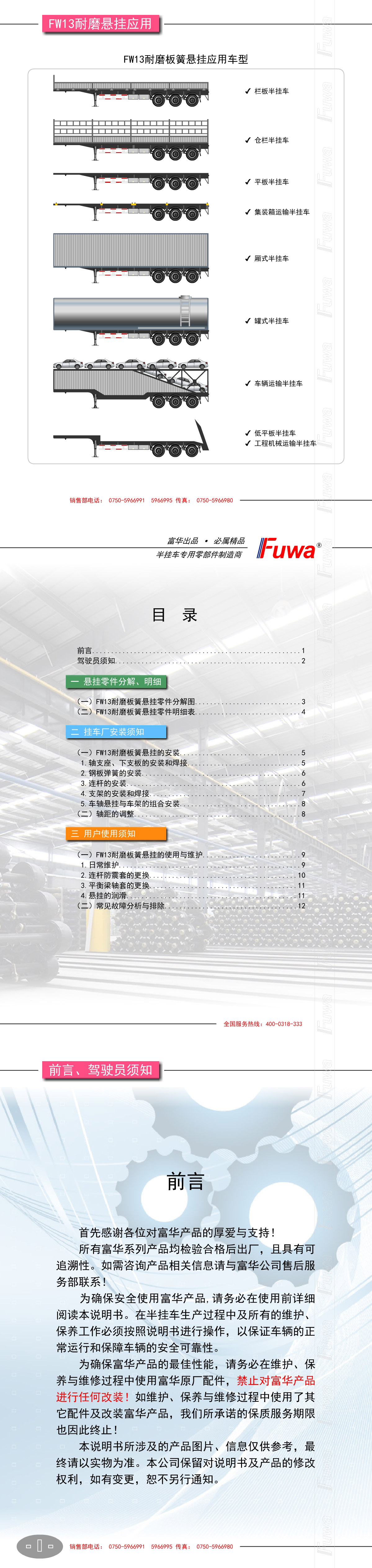 FW13耐磨板簧悬挂【产品使用说明书】