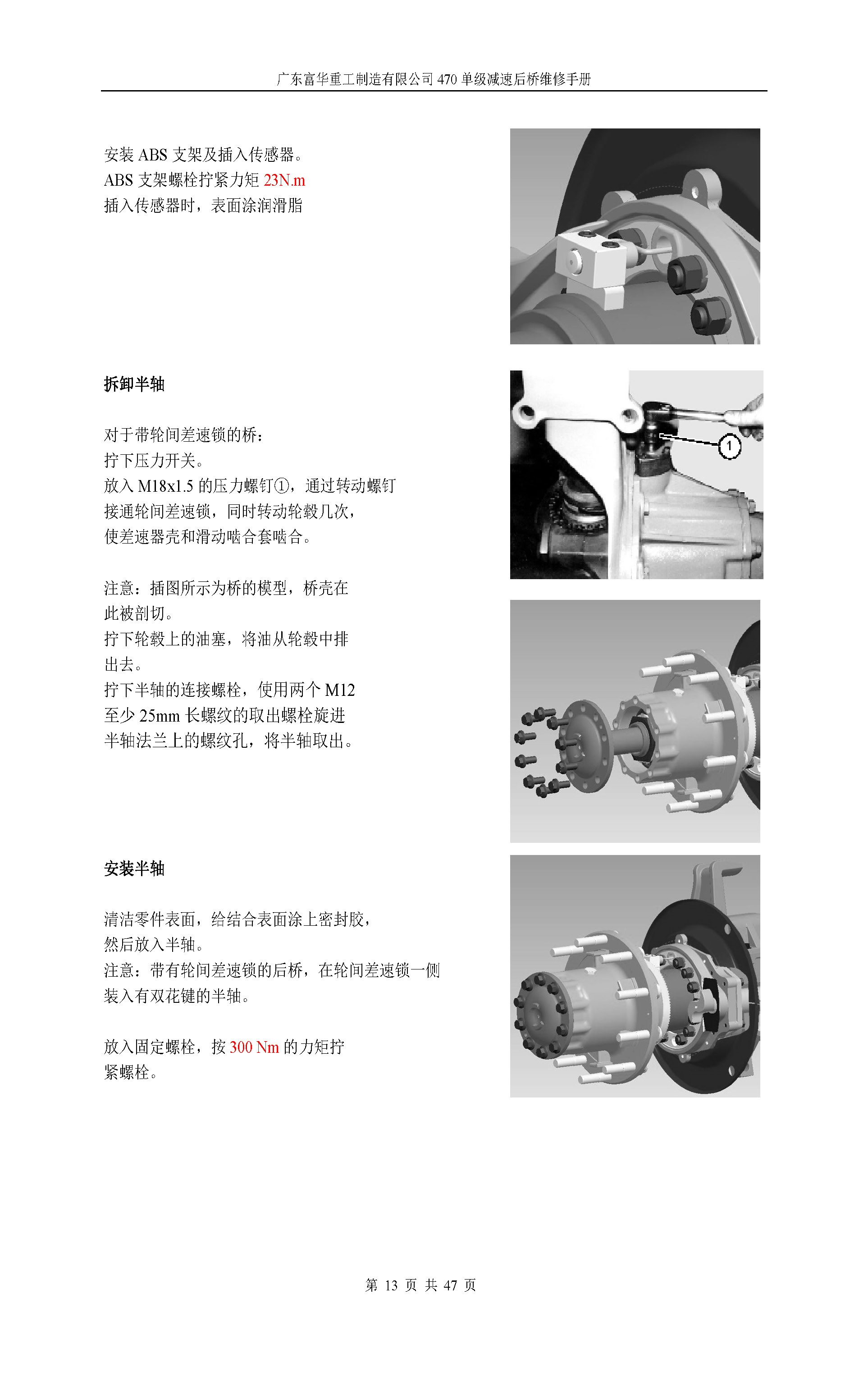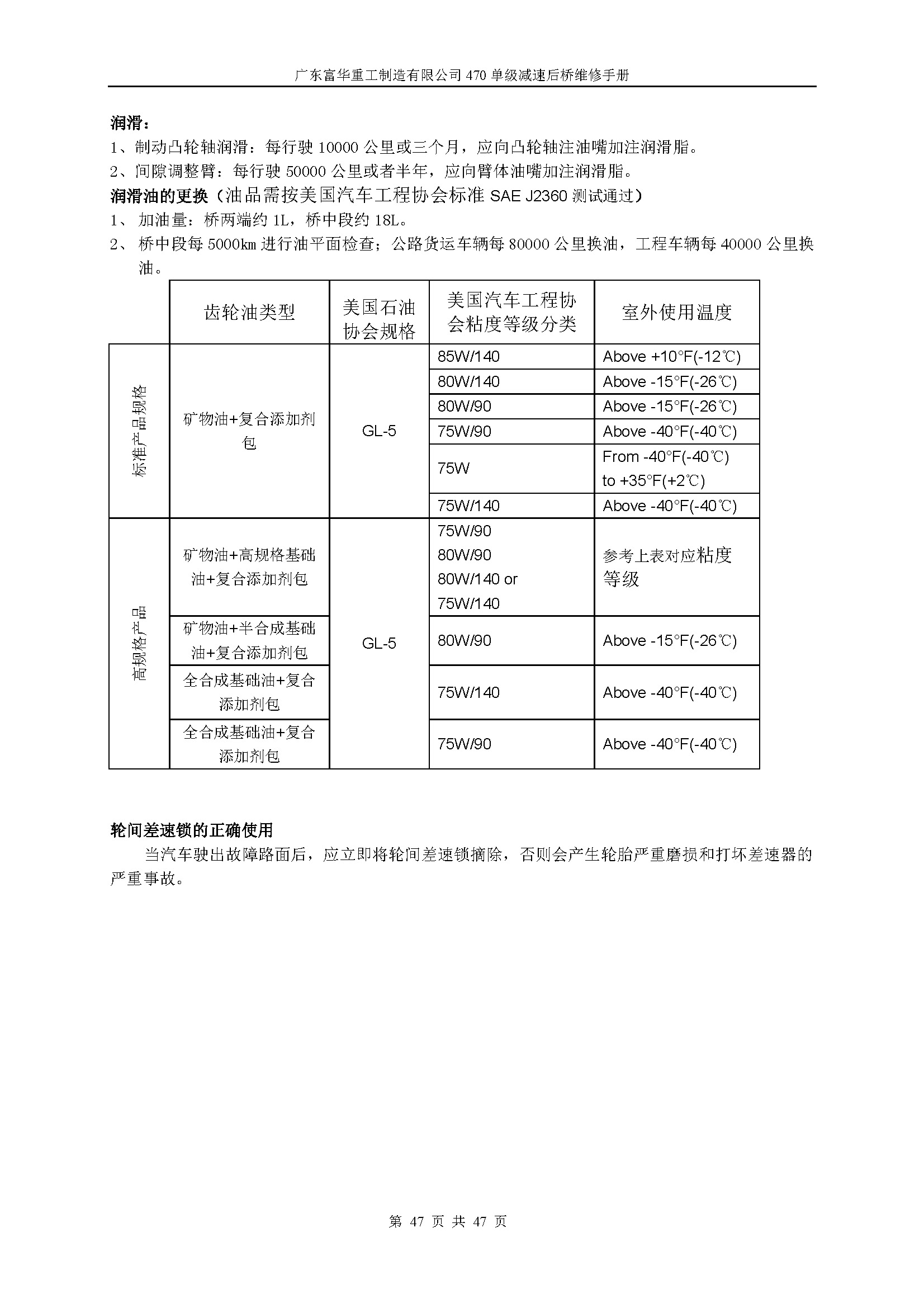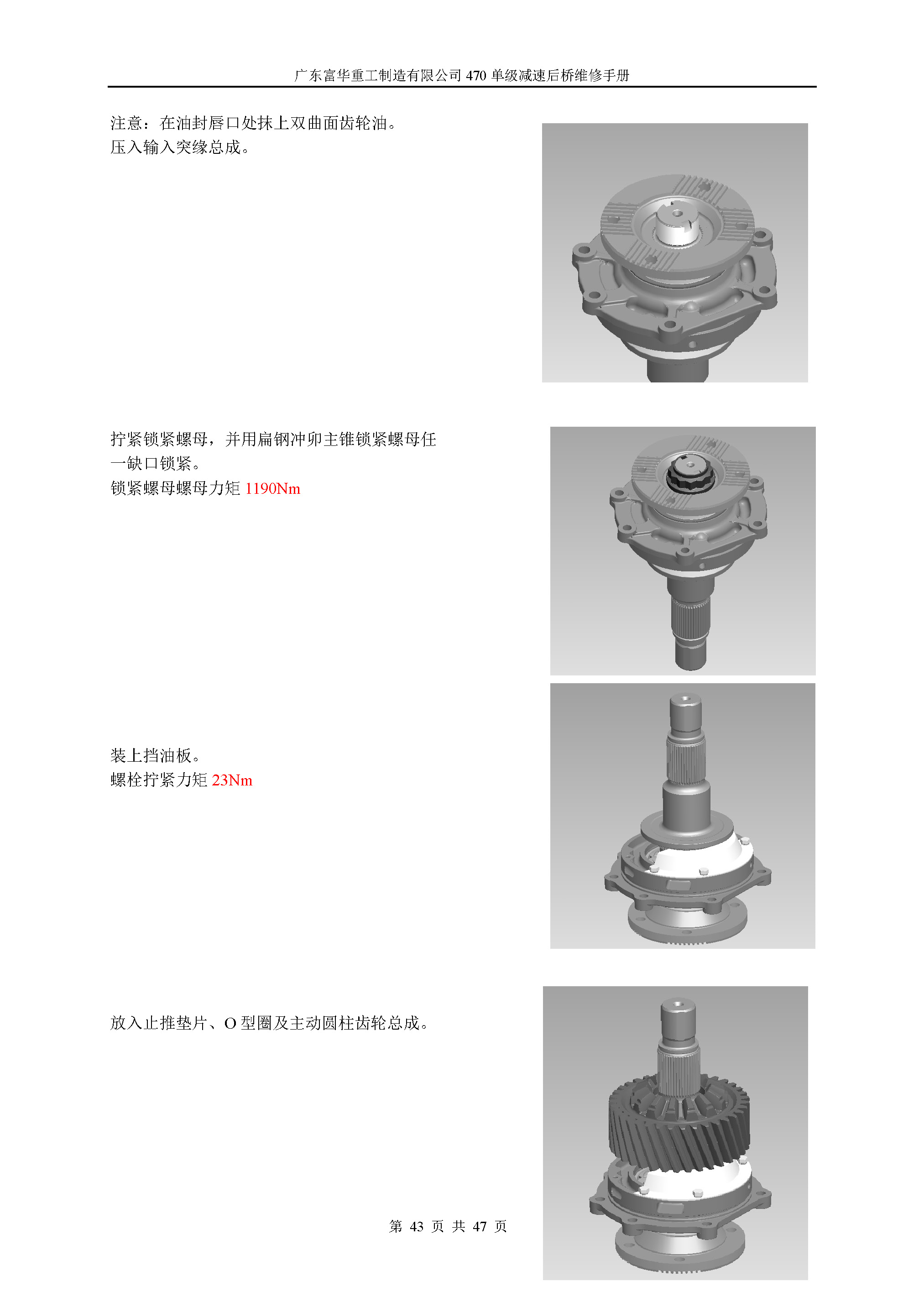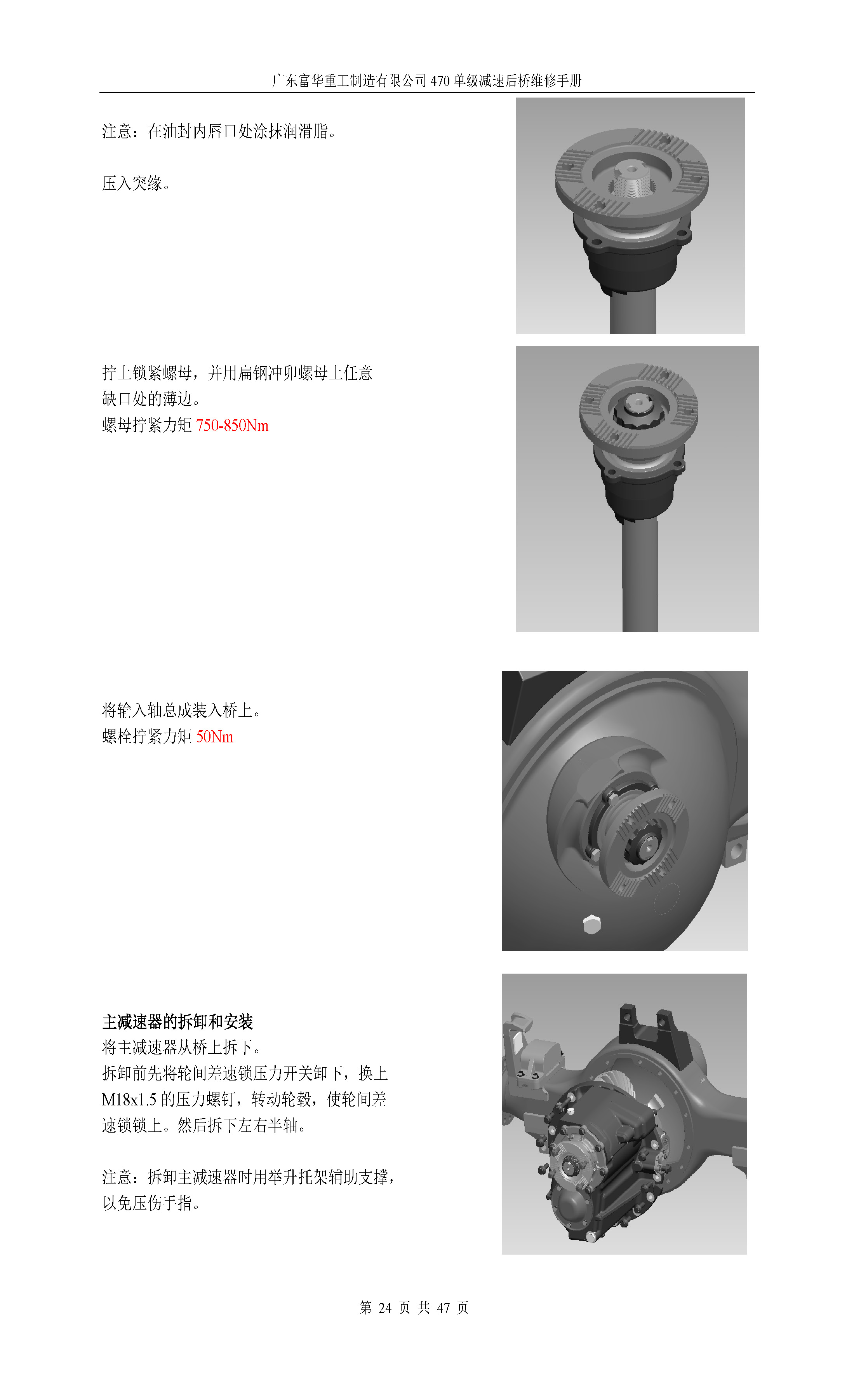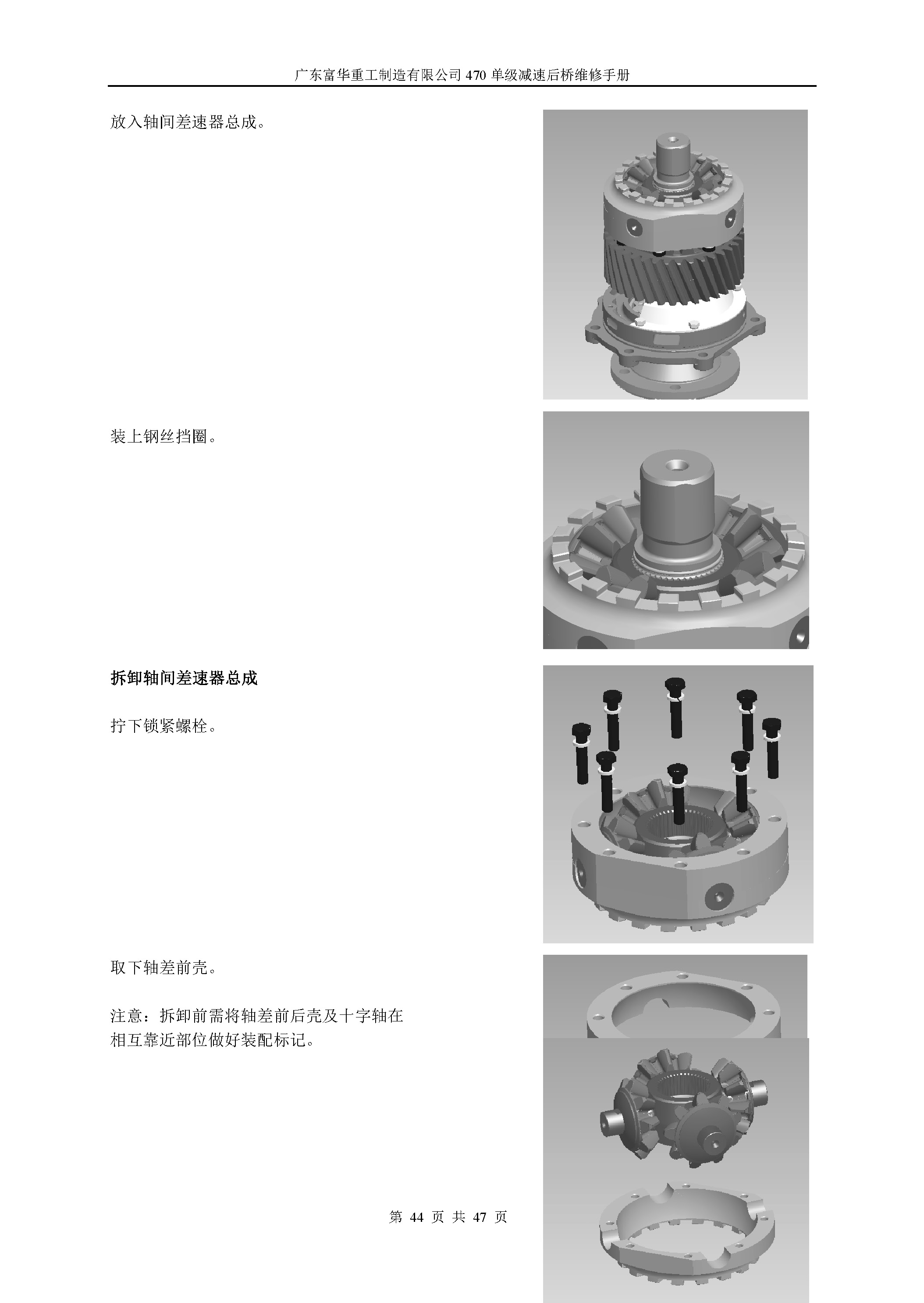 470单级减速中桥维修手册