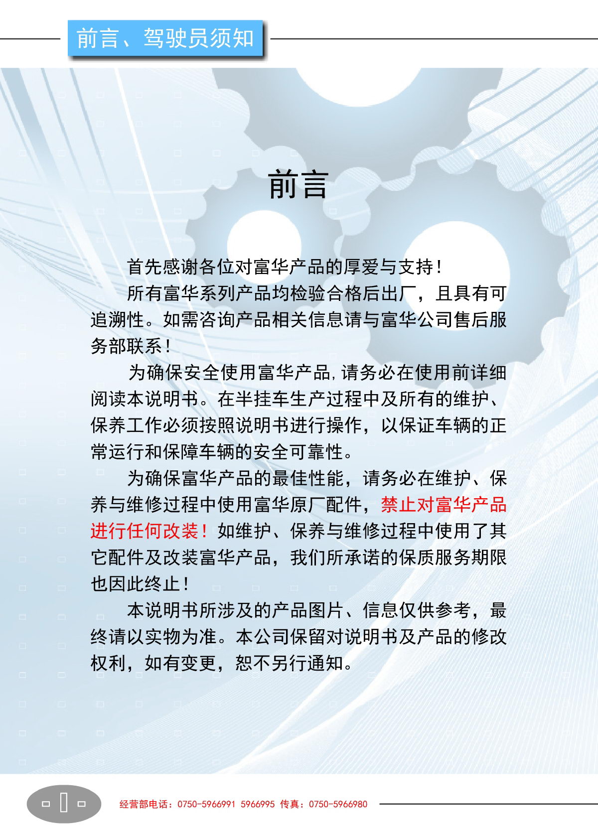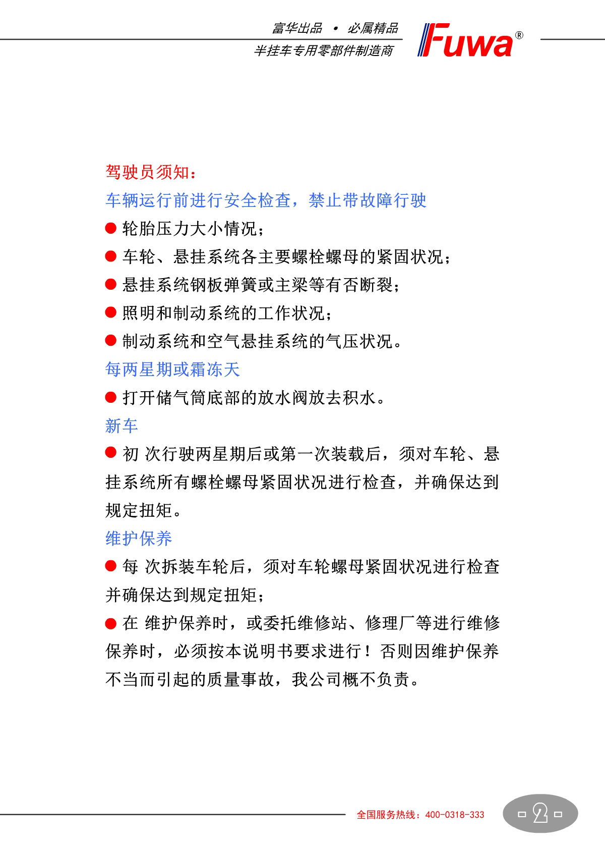 Next: Fifth wheel, kingpin 【Product Operating Manual】