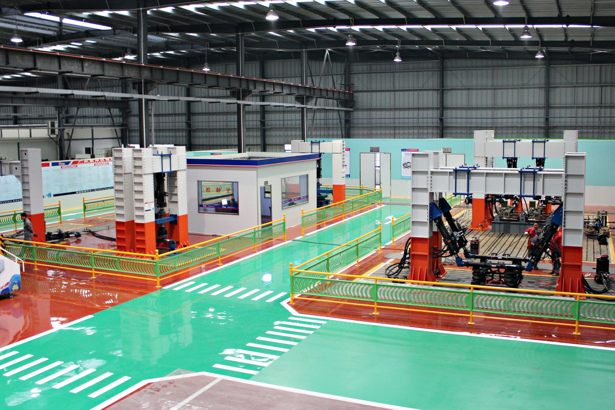富华集团质量检测中心总占地面积达5500平方米,分为三大区域,分别是检测区、试验区以及最新建成的“汽车底盘零部件总成结构性能综合试验平台”。检测区共设置12个科室,主要承担精密测量、理化检测分析和计量检定等60多项检测检验工作。试验区(车轴试验部)以可靠性试验为主,配备20多组自主研发的试验设备,目前可完成30多项产品功能性试验。