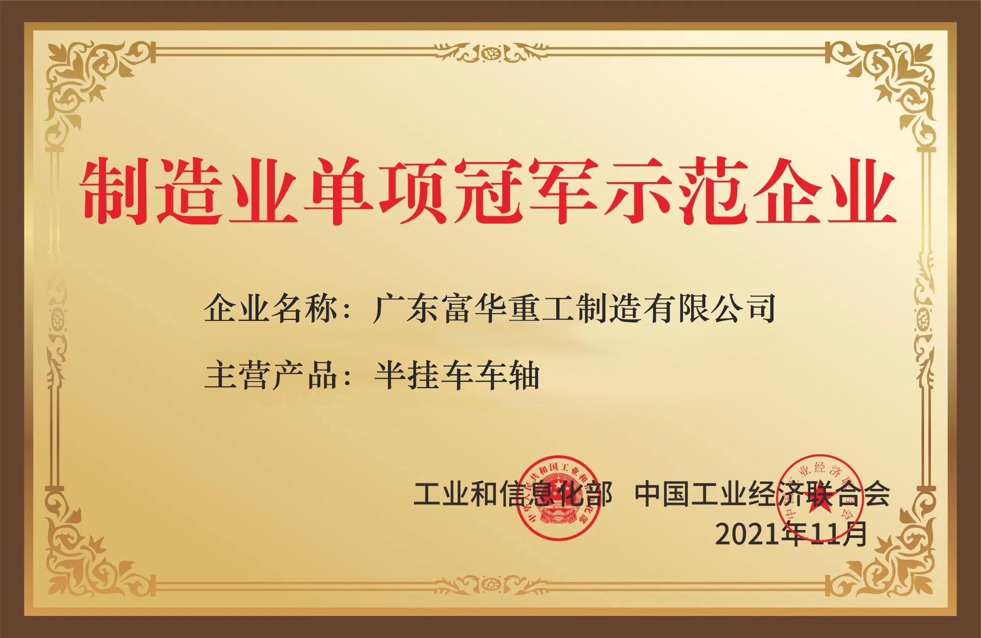 近日,国家工信部发布了最新一批制造业单项冠军企业名单,广东富华重工制造有限公司“挂车车轴”荣耀在列。成为制造业单项冠军示范企业,彰显了富华重工高端商用车行走机构制造的硬核实力。